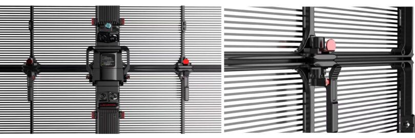 Với kích thước 1 cabin 500x1000mm có trọng lượng khoảng 9 kg và mỏng 8 cm, với hệ khung nhôm hoặc carbon vững chắc nên tối giảm được hệ khung đỡ phía sau màn hình, giúp độ trong suốt và nhìn xuyên thấu tối đa. Transparent LED screen có thể được treo tại các trung tâm thương mại để làm Poster LED.